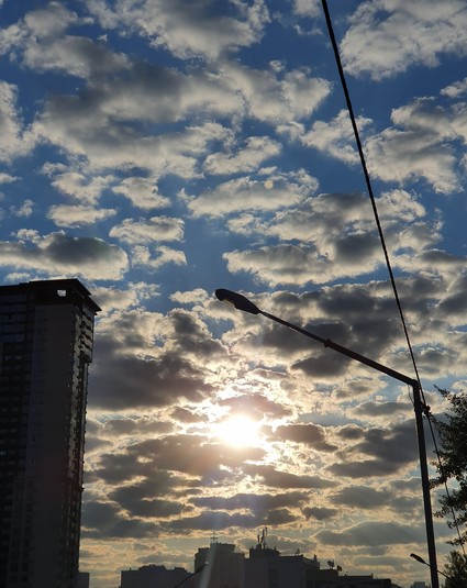 Сьогодні зранку небо над Києвом було вкрите купчастими хмаринками. Мешканці столиці зробили дивовижні кадри світанку у місті. Фото опублікував експерт Юрій Подорожній на сторінці у Facebook.