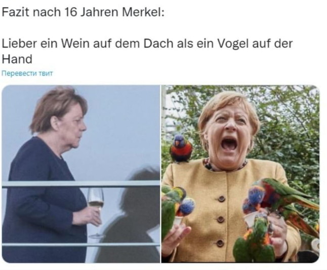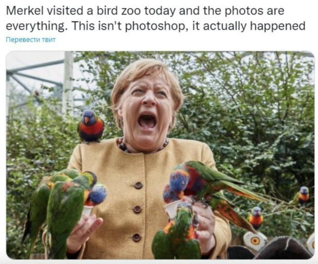 Фотографії Меркель, що сміється, з папугами миттю розлетілися мережею й одразу ж стали мемами.