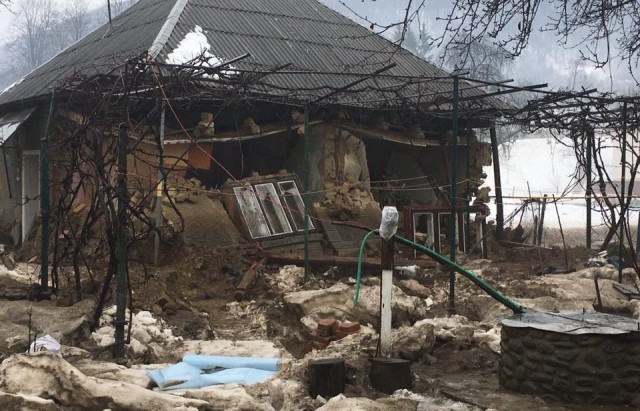 Повністю зруйновано тут два житлових будинки. Десятки подвір'їв плавають у болоті під шаром льодових брил, а стіни осель наскрізь промокли.