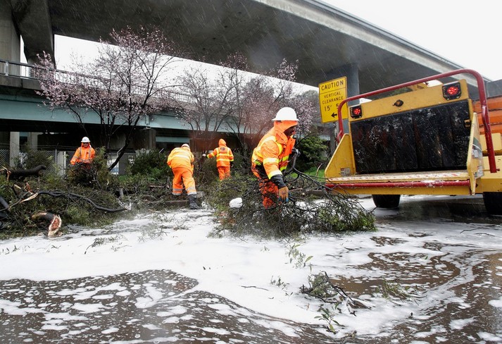 Також у Каліфорнії пройшли сильні снігопади. Довелося перекривати дороги, багато з них були затоплені і зруйновані, зсуви зносили будинки, автомобілі і дерева. Сотні людей були евакуйовані зі своїх будинків.