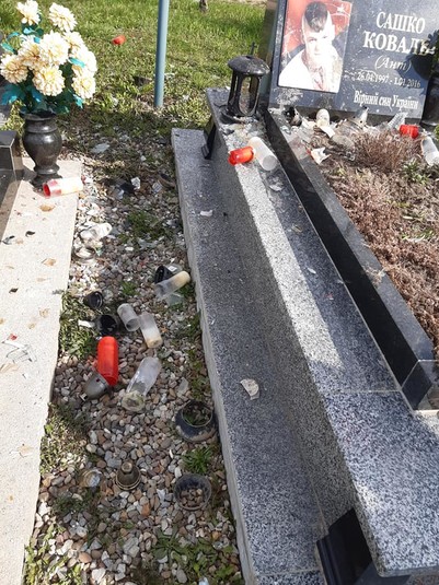 Інцидент трапився за кілька днів до дня народження захисника. Вандали розбили світлину на пам'ятнику, навкруги скло, побиті лампадки.