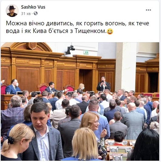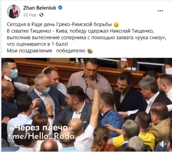 У Верховній Раді на пленарному засіданні 17 червня сталася сутичка між депутатами «Слуги Народу» та «Опозиційної платформи – За життя». Представник ОПЗЖ Ілля Кива та «слуга» Микола Тищенко почали чубитися і тягати один одного. Їх намагалися розборонити інші депутати.