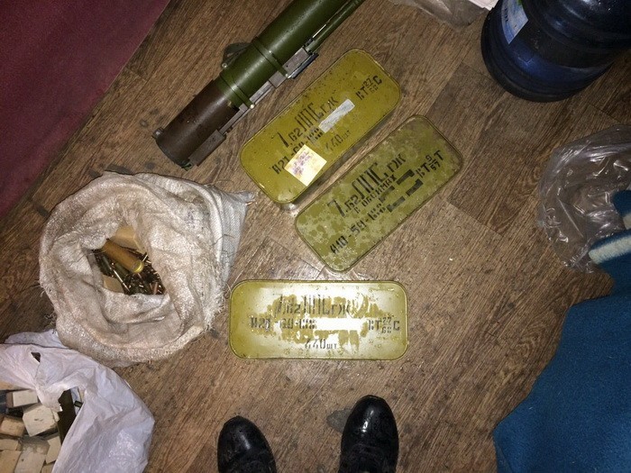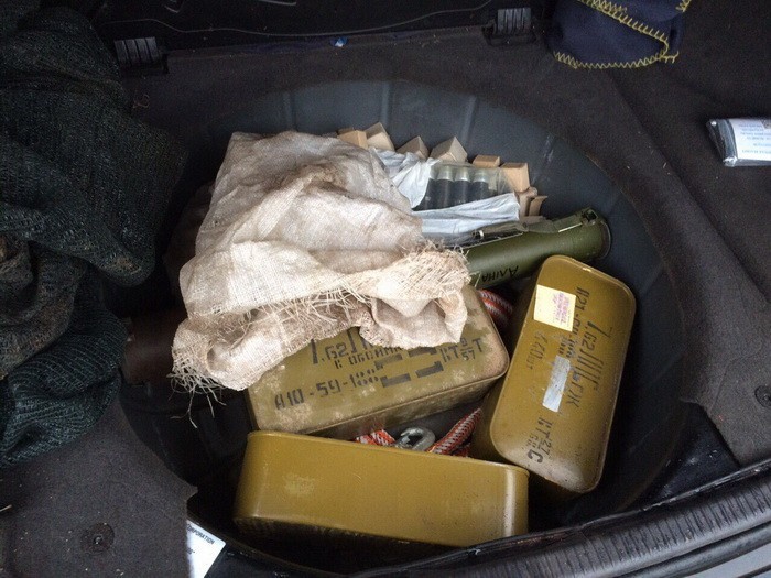 Під час огляду авто оперативники СБ України вилучили гранатомет РПГ-22, пороховий заряд до гранатомета РПГ-7, 22 постріли ВОГ-17 для автоматичного гранатомета, протипіхотну міну, близько трьох тисяч набоїв різного калібру, чотири сигнальні ракети тощо.
