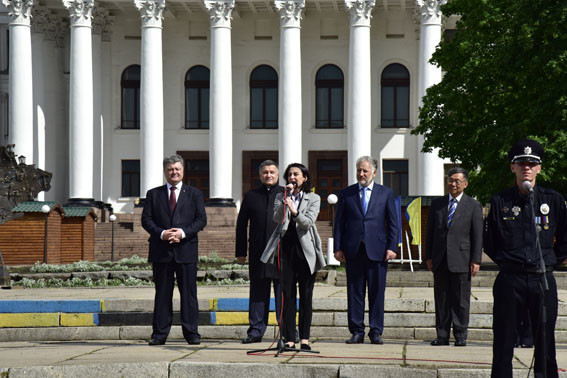 Глава Національної поліції України Хатія Деканоідзе зазначила, що два роки тому важко було уявити, що тут майорітимуть українські прапори.