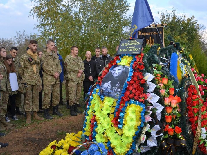 Близько п'яти сотень осіб зібралися віддати останню шану герою. Односельці, друзі, бойові побратими та свободівці з усієї України прощалися з другом Мирославом Мислою.