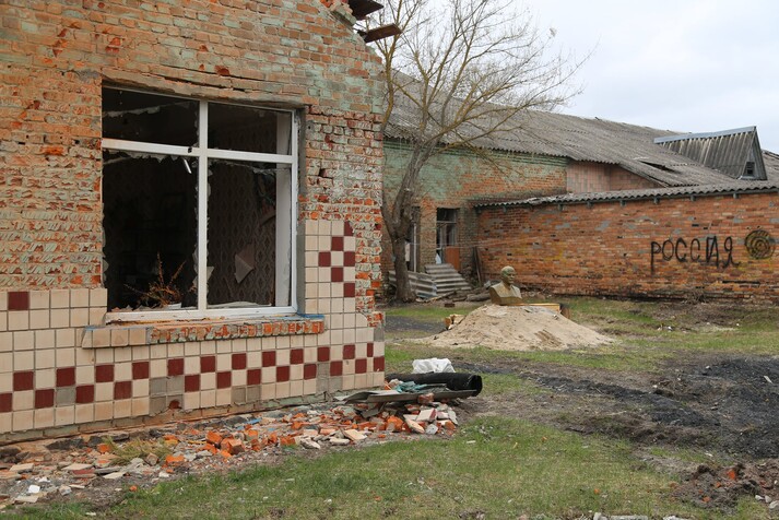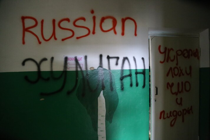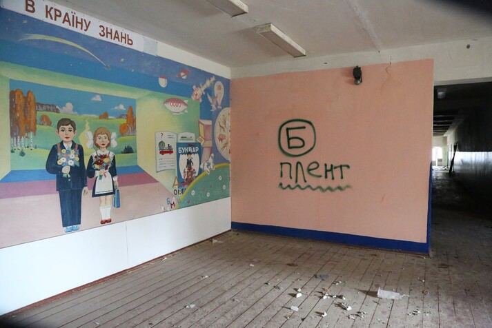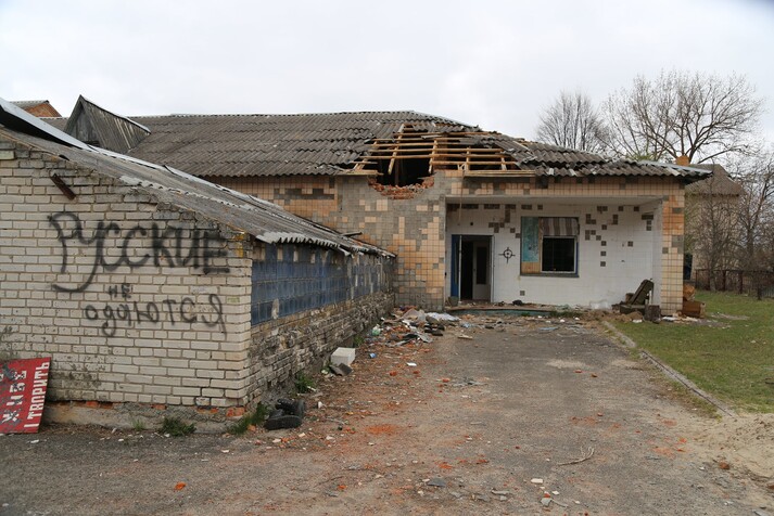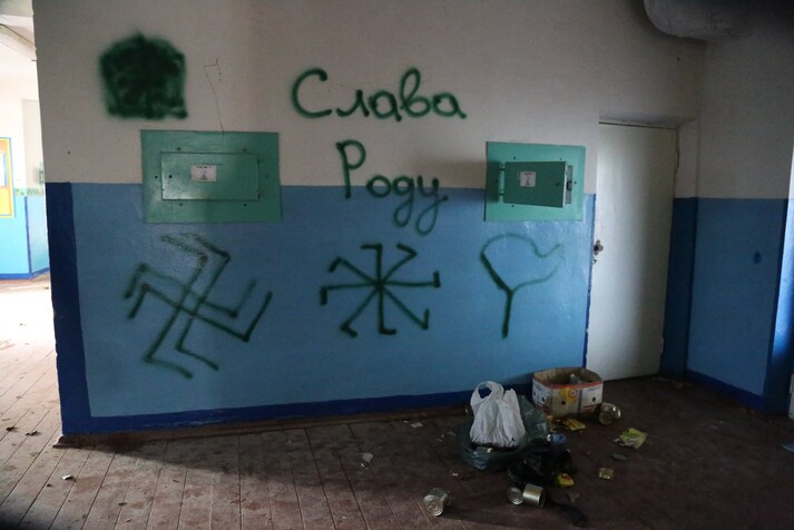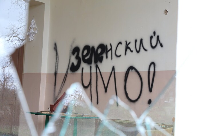 У селі Кропивня, на Київщині, під час окупації рашисти облаштували свій штаб у місцевій школі. Коли росіяни тікали, то залишили після себе чимало «подарунків». Зокрема, велику кількість нацистських графіті.