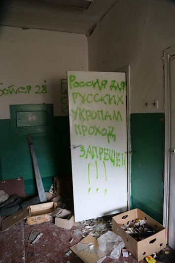 «У селі Кропивня я зафіксував дикунські «граффіті» на стінах школи, де орки три тижні базувалися, а пізніше, перед відступом, частково зруйнували приміщення. Ці написи виконані, безперечно, руками ще вчорашніх дітей, а сьогодні – одягнутих у рашистську уніформу й відправлених в Україну на вірну смерть недосвідчених вояків. З молоком і пивом та горілкою на губах і безкінечною порожнечею в зазомбованій путінськими «ящиками» голові…», − розповів місцевий журналіст, Павло Смовж.