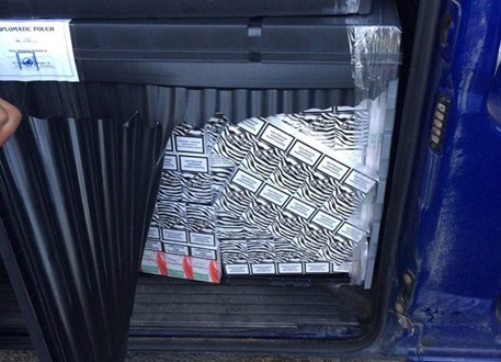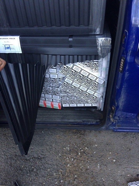 При огляді автомобіля було виявлено, що у валізах, які за документами числилися дипломатичним вантажем, міститься 29145 пачок сигарет, а саме: Rothmans українського виробництва з акцизними марками України, "Комплімент Вінс", NZ, Lifa - без акцизних марок.