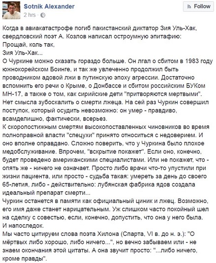 На нього вже чекає Сатана. Як у соціальних мережах коментують смерть Чуркіна