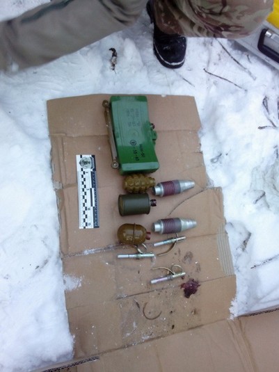 У тайнику, що зловмисник облаштував у підсобному приміщенні приватного господарства, він зберігав 900 набоїв до автомата Калашникова, протипіхотну міну МОН-50, три гранати Ф-1, РГД-5, РГ-42 та два постріли до гранатомета ВОГ-25П.