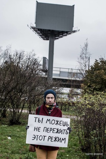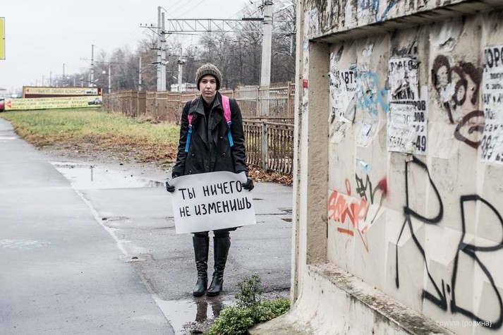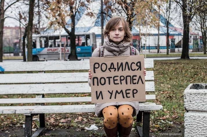 У рамках акції кілька людей сфотографувалися біля кладовища, огорожі та залізниці з плакатами про те, як у країні все погано: «Ти не переживеш цей режим», «Ти нічого не зміниш», «Народився, потерпів і помер». Про це інформує tjournal.ru.