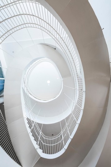 У головній частині будівлі спроектовані класні кімнати, з'єднані великим багатофункціональним залом для проведення різних освітніх заходів з похилим блоком з ігровим майданчиком на зеленому дасі.