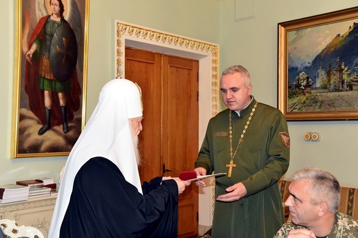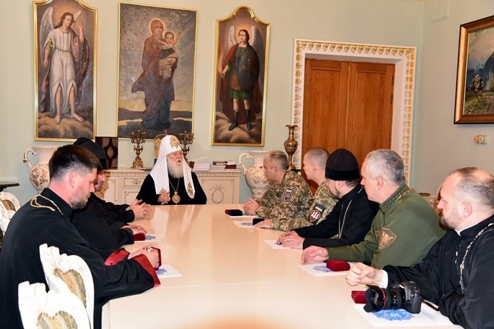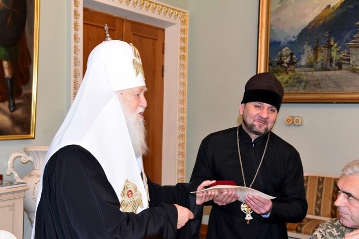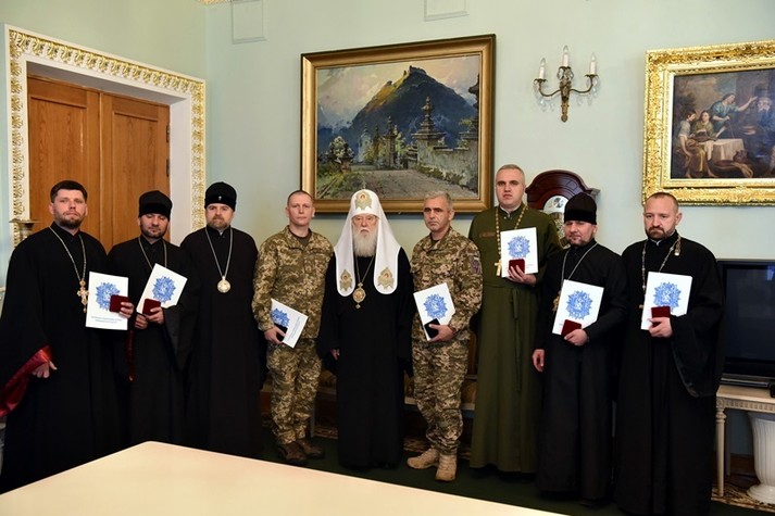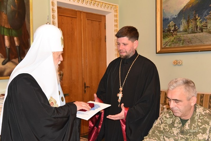 Святійший патріарх Філарет також відзначив церковними нагородами й військових священиків