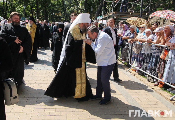 Хресному ходу передував урочистий молебень на Володимирській гірці, який очолив митрополит Мовсковської церкви в Україні Онуфрій. На Володимирську гірку прийшли й політики. Зокрема, тут були присутні Вадим Новинський, Юрій Бокйко, Михайло Папієв, Андрій Деркач та Нестор Шуфрич. Дострокові вибори розділили цих політиків на два опозиційних табори. Тому привітавши один одного, під час молебню вони стояли порізно.