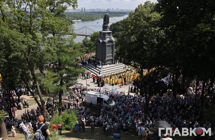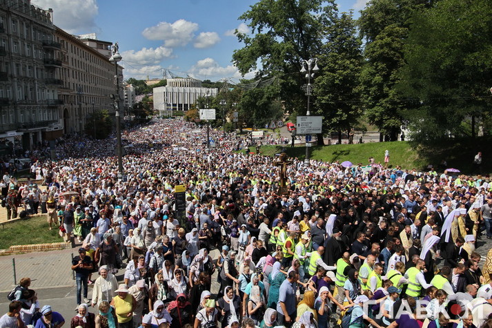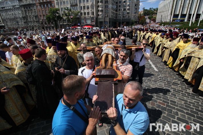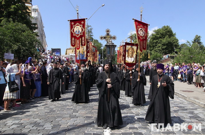 Парафіяни Української православної церкви Московського патріархату пройшли хресним ходом центральними вулицями столиці. Масовий захід бувприсвячений до Дня хрещення Русі-України.