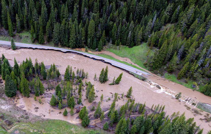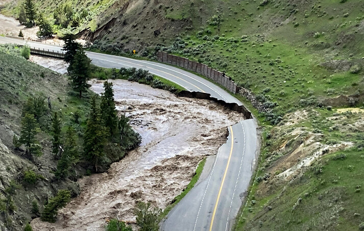 Через рекордні зливи рівень води в річці Йєллоустоун в американському штаті Монтана досяг рекордного рівня. Через це, вперше за 34 роки всі входи в Єллоустонський національний парк були закриті.