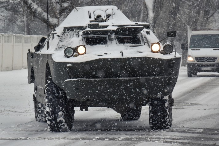 Протидиверсійна група холодноярців за допомогою БРДМ-2 дає відсіч силам ворога.