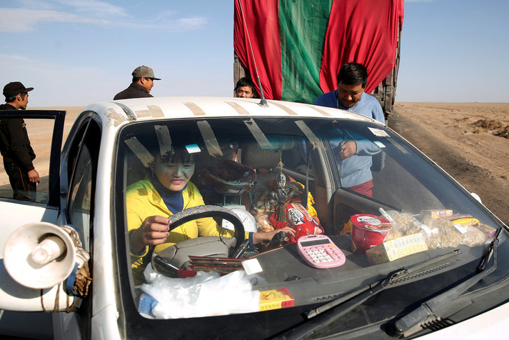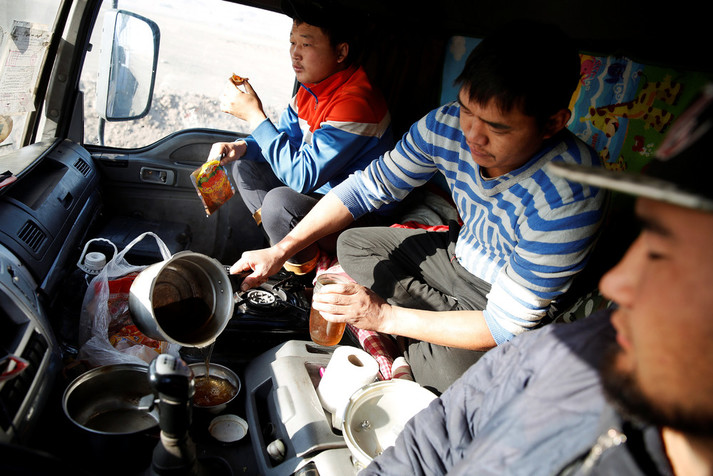 Тисячі важких вантажівок, навантажених вугіллям, щодня рухаються по монгольській пустелі Гобі уздовж дороги до китайського кордону. Далекобійники готують, їдять і сплять в автомобілях, покритих вугільним пилом, багато хто з них харчуються тим же м'ясним супом, що і монгольська орда Чингісхана більше восьми століть назад.