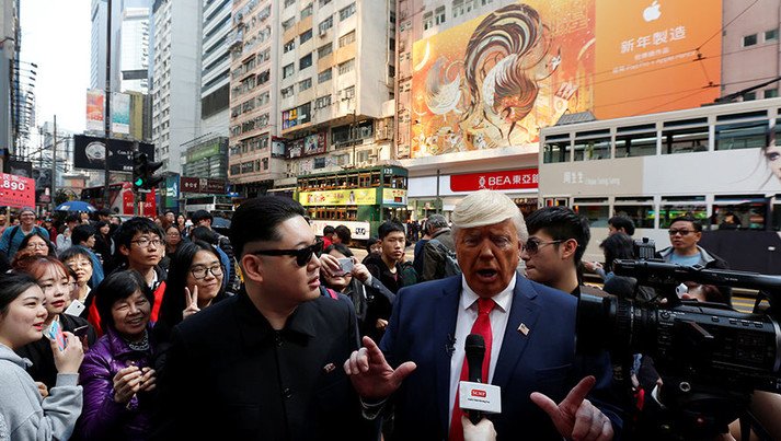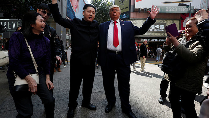 Неочікувана зустріч у Гонконзі. Як двійники Дональда Трампа та Кім Чен Ина містом гуляли