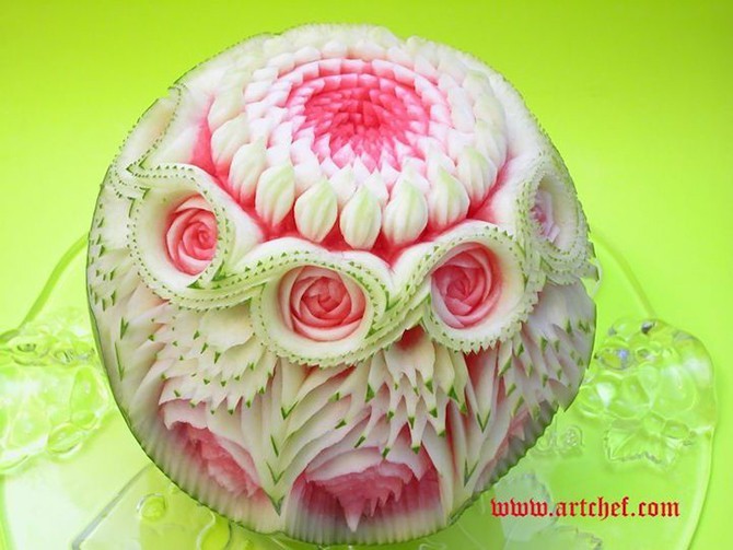 Протягом століть, вирізання скульптур з кавунів було мистецтвом, яке шанувалося в Таїланді