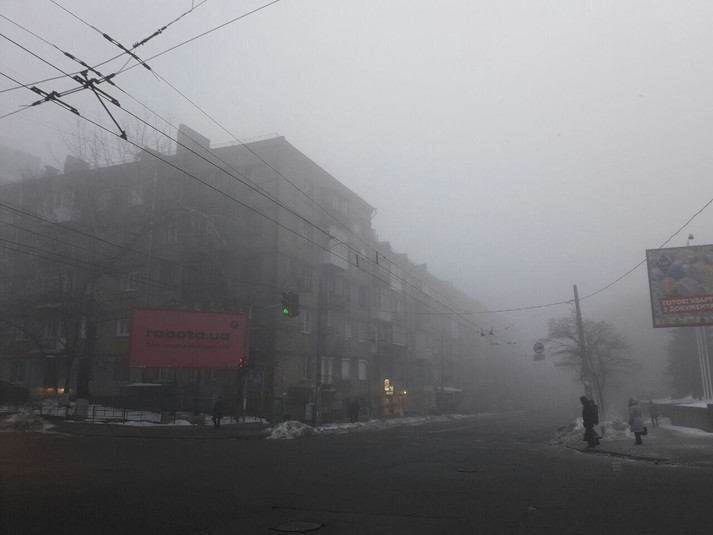 З учорашнього дня, 16 січня, жителі Києва масово скаржаться на туман і запах гару в різних районах міста