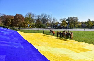 Новий рекорд. У Чернігові розгорнуто найбільший в’язаний прапор (фото)