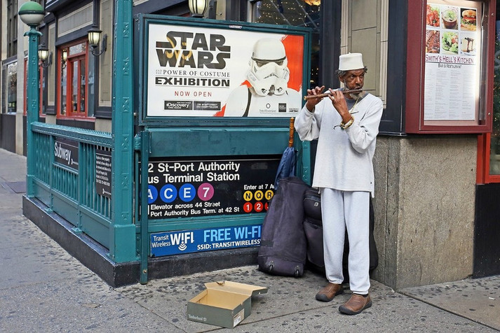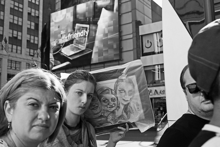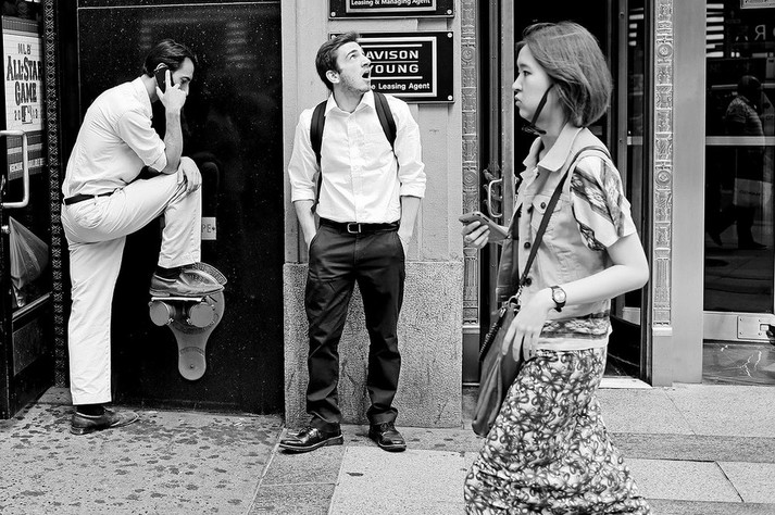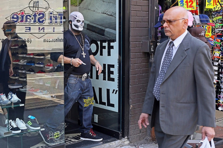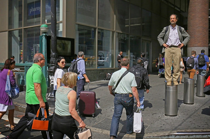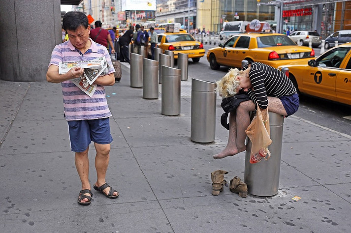 «Це Нью-Йорк, тут немає дефіциту на дивне, незвичне, химерне і гумористичне. Така природа тутешньої культури. У цьому місті індивідуальне самовираження не тільки прийняте і вітається, але також викликає захоплення і заохочується. Так що в Нью-Йорку ніколи немає проблем з темою зйомки. Все що потрібно - час і кілометри, щоб ходити і шукати», - розповідає вуличний фотограф з найбільшого міста США.