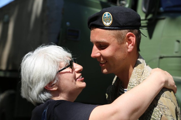 На Думській площі рідні, друзі, товариші по службі і небайдужі одесити вітали військових.