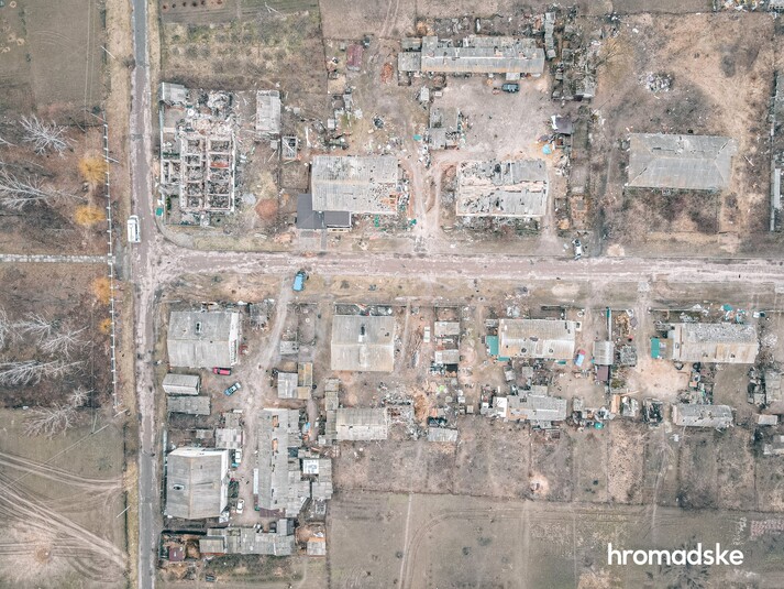 Після звільнення від російських військ − воно майже місяць перебувало під російською окупацією, вид у села жахливий. Місцевим жителям, по суті, нікуди вертатися.