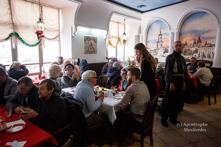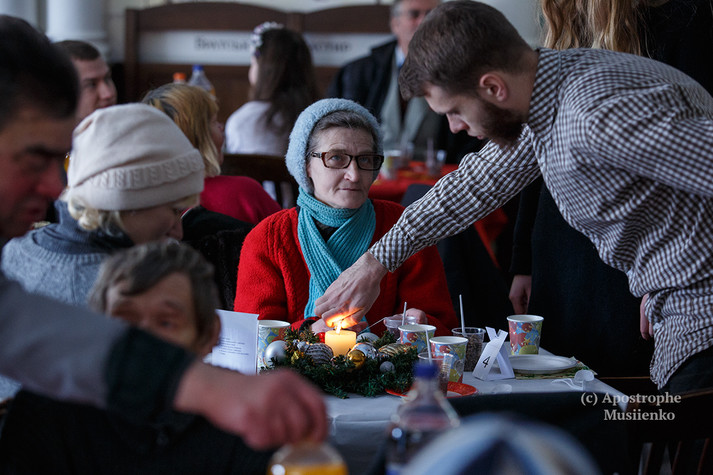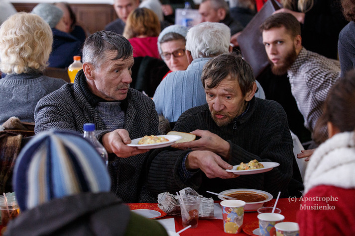 У Києві влаштували благодійний різдвяний обід для безхатьків, аби ті, хто не має, з ким та за що святкувати, хоч ненадовго відчули родинне тепло та затишок