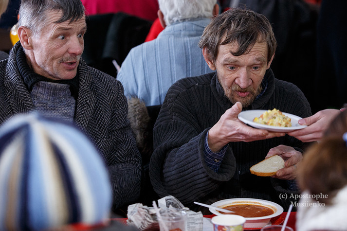 Олів'є, борщ та голубці. Як у Києві різдвяним обідом пригощали безхатьків