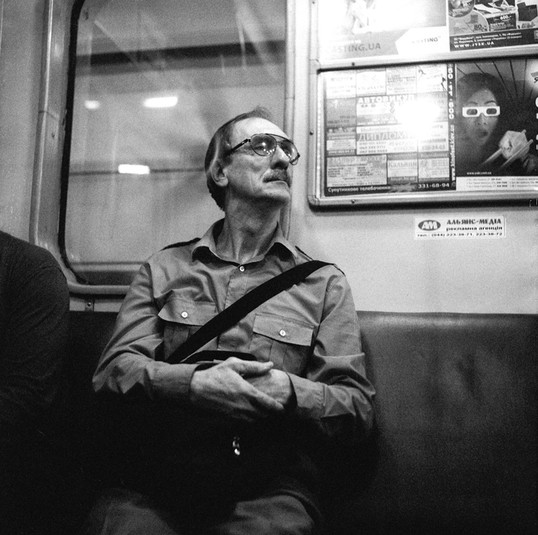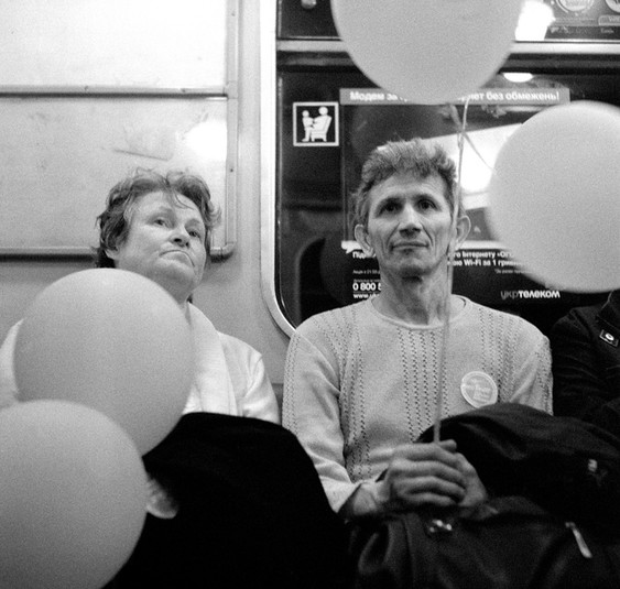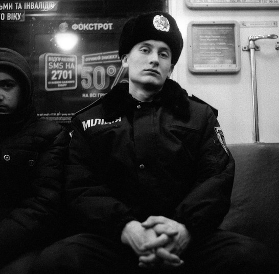 Військовий фотограф Олесь Кромпляс показує пасажирів нічних потягів київського метро, яких він сфотографував ще до революції Гідності
