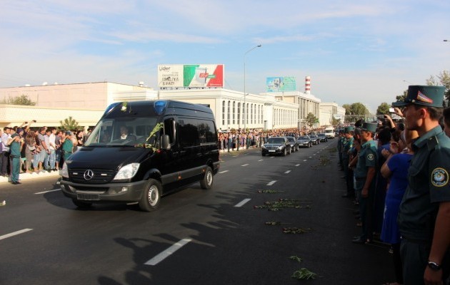 Уздовж вулиць, по яких рухався жалобний кортеж, з раннього ранку вишикувалися люди, що закидали автомобілі квітами. В самому аеропорту Ташкента кортеж зустріли понад тисячу осіб.