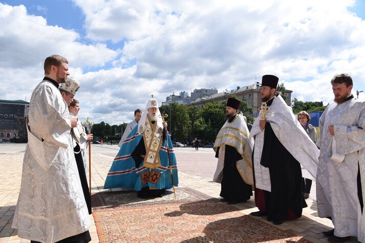 Як повідомляє пресслужба патріарха, його Святості співслужило духовенство Володимирського собору.