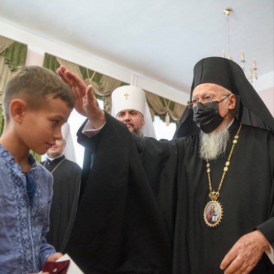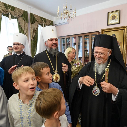 На зустріч із Патріархом Варфоломієм та Митрополитом Епіфанієм до Київської православної богословської академії завітали діти військовослужбовців, полеглих захисників України, учасників АТО, а також діти-сироти, діти з інвалідністю, діти кримських татар-переселенців тощо. Про повідомили на сторінці Православної Церкви України у Facebook.
