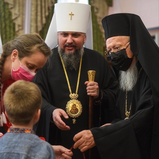 Вселенський Патріарх Варфоломій і Блаженнійший Митрополит Епіфаній благословили дітей і на згадку про зустріч подарували їм пам’ятні подарунки та іконки.