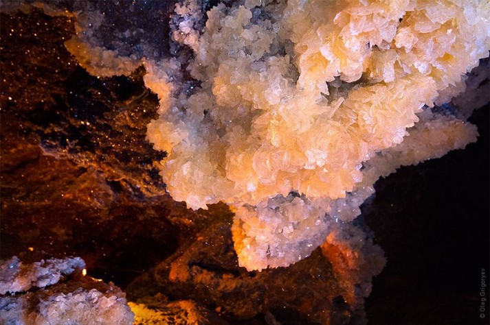 «Зрозуміти ці назви можливо тільки після того, як сам проповзеш їх, - каже фотограф. - Печерна атмосфера підземного світу - це мільйони маленьких кристалів на стінах, які виблискують як зірки. Дуже чарівне видовище. Досить складно описати свої емоції і передати за допомогою фотографії об'єми і простори печери, неймовірну красу залів і галерей. Гіпсові кристали грають усіма барвами у світлі ліхтарів і свічок, ніби невеликі всесвіти - це потрібно хоча б раз побачити самому».