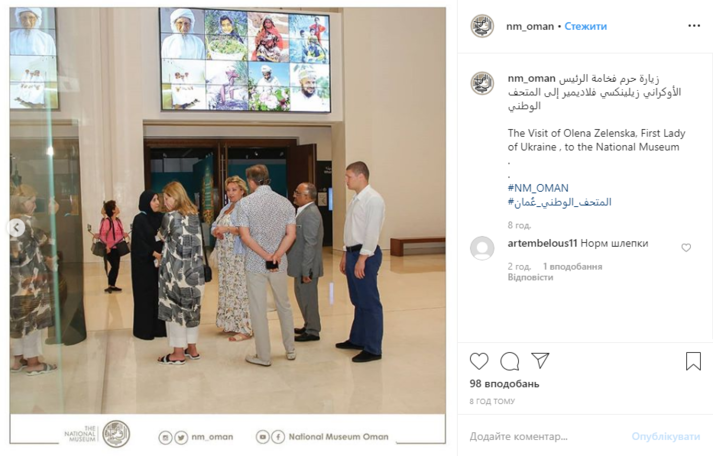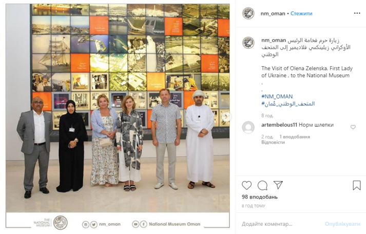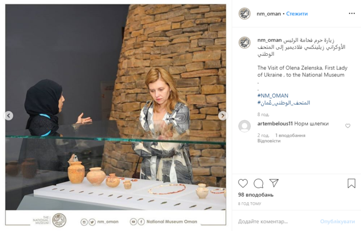 Перша леді України Олена Зеленська відвідала Національний музей Оману, взута у шльопанці. Відповідне фото опубліковано на Інстаграм-сторінці музею.