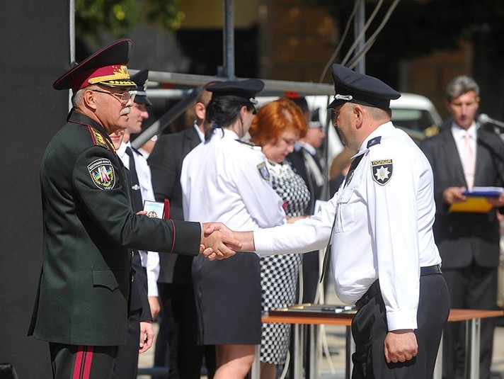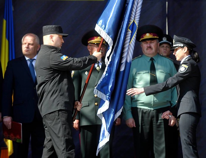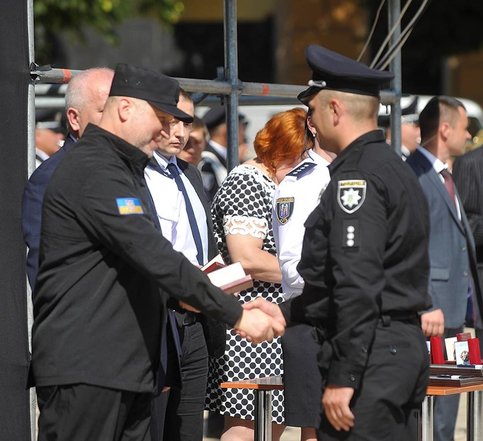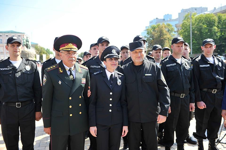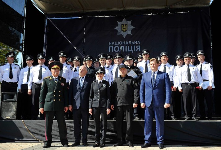 В урочистостях взяли участь глава Нацполіції Хатія Деканоідзе, тимчасовий виконувач обов'язків очільника МВС Сергій Яровий, секретар РНБО Олександр Турчинов та перший віце-прем'єр-міністр – міністр економічного розвитку і торгівлі Степан Кубів.