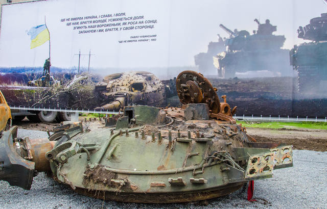 Своє місце на майданчику під відкритим небом вже зайняли БТР, вежа танка, «швидка», міномет, згорілий автомобіль.