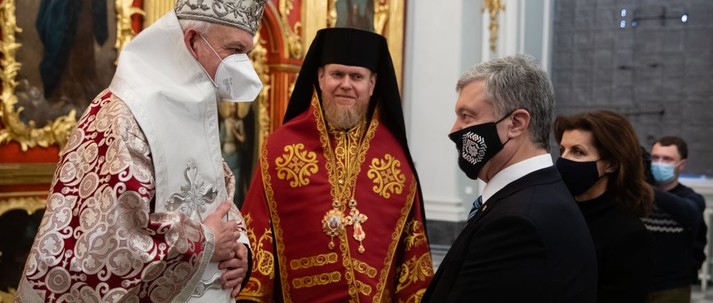 П’ятий Президент України, лідер партії «Європейська Солідарність» Петро Порошенко та Марина Порошенко взяли участь в урочистій Літургії з нагоди свята апостола Андрія Первозваного. Як повідомляє прес-служба партії, святкове богослужіння в Андріївській церкві, що відкрилася після тривалої реставрації, очолив особливий представник Вселенського Патріарха Варфоломія митрополит Гальський Еммануїл (Адамакіс) у співслужінні архієрея ПЦУ архієпископа Чергінівського та Ніжинського Євстратія (Зорі) та Екзарха Вселенського Патріарха Варфоломія в Україні єпископа Команського Михаїла (Аніщенка).