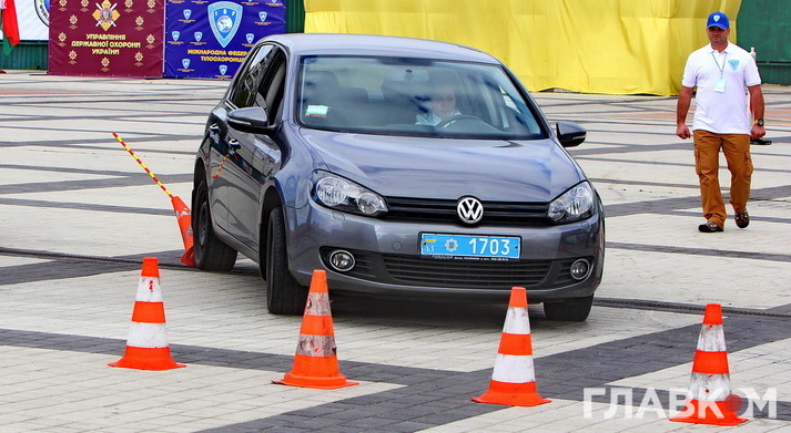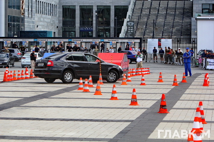 Сьогодні, в центрі столиці, спецпризначенці демонстрували навички та майстерність керування автомобілем в екстремальних ситуаціях. Командам потрібно було подолати смугу перешкод, на якій одним із завдань було здійснення поліцейського розвороту не зачепивши фішки. Але не всім вдалося чисто проїхати смугу перешкод: