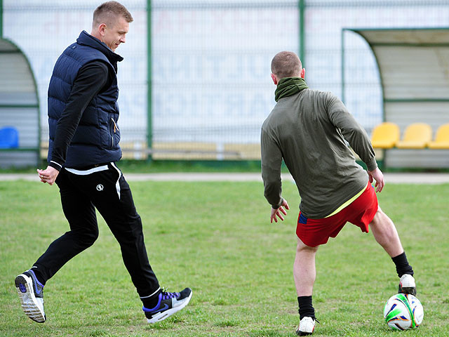 Разом з гравцями «Карпат» на полігоні був і головний тренер команди Олег Дулуб.