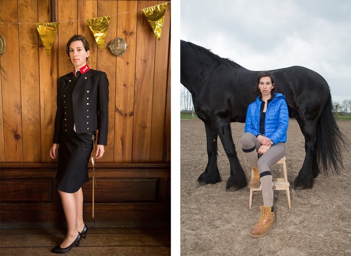 «Я вирішила зробити серію портретів голландок, котрі служать у військово-морських силах, у двох різних ситуаціях. Спочатку у формі біля казарм, а потім вдома, щоб подивитися, які вони за межами військової служби. В усіх випадках я дивувалася, коли мені відкривали двері. Зміни були неймовірними: особистість дівчини одразу виходила на перший план», – стверджує фотограф.