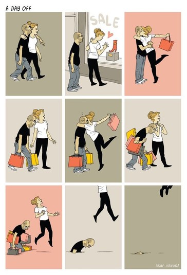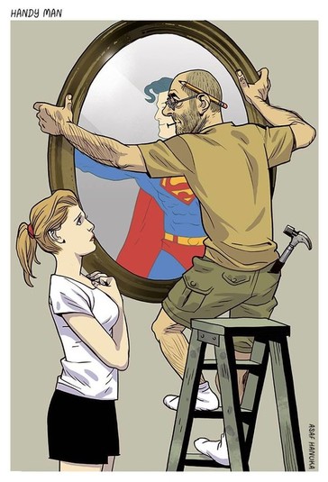 Ізраїльський ілюстратор Асаф Ханука прославився завдяки своїм гострим коміксами і карикатурам на сучасний світ. Часто об'єктами глузувань в його малюнках стають сімейні відносини, егоїзм, побутові ситуації і непорозуміння в суспільному житті.