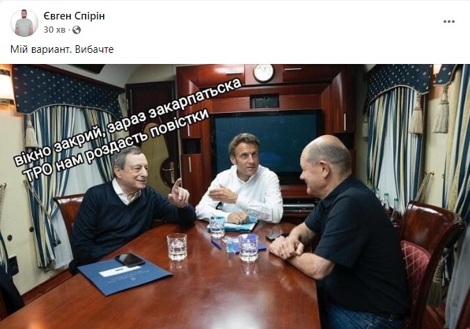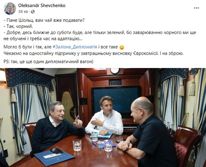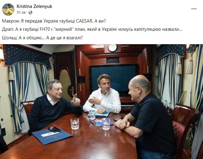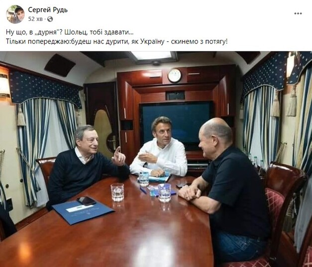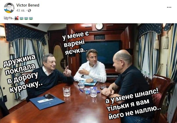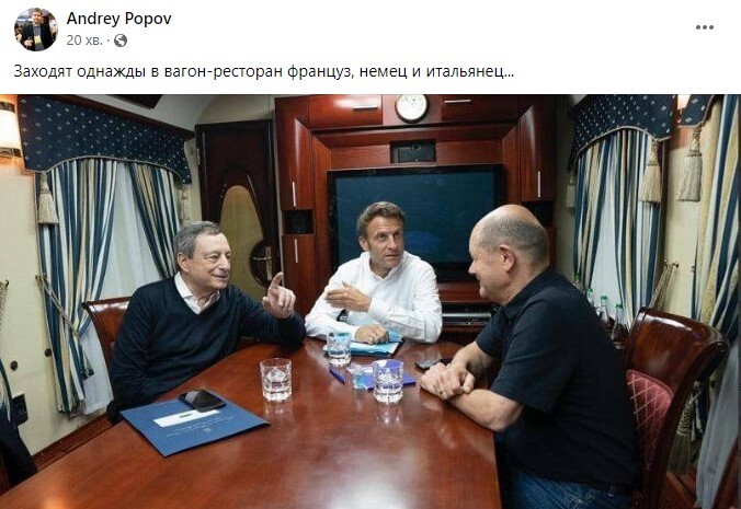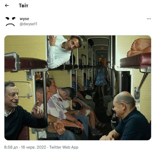 Шольц, Макрон та Драгі у поїзді: українці відреагували жартами (фото)