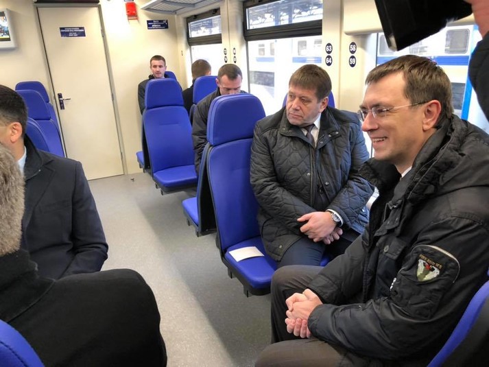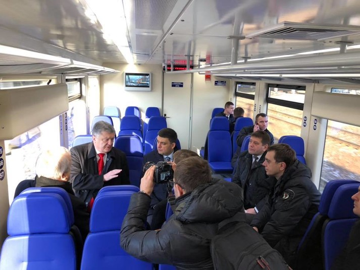 На ньому, зокрема, в дорогу вирушили президент Петро Порошенко, очільник уряду Володимир Гройсман, в.о. гендиректора «Укрзалізниці» Євген Кравцов та міністр інфраструктури Володимир Омелян.