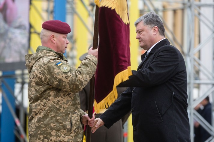 «Відсьогодні моїм рішенням кольором українського десанту стає темно-бордовий. Це – колір крові десантників, пролитої в боях за Україну», - сказав Петро Порошенко під час урочистої церемонії.