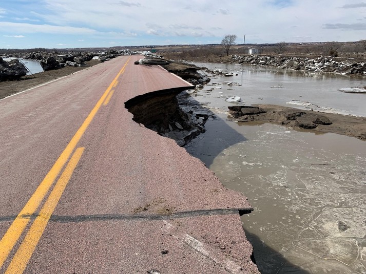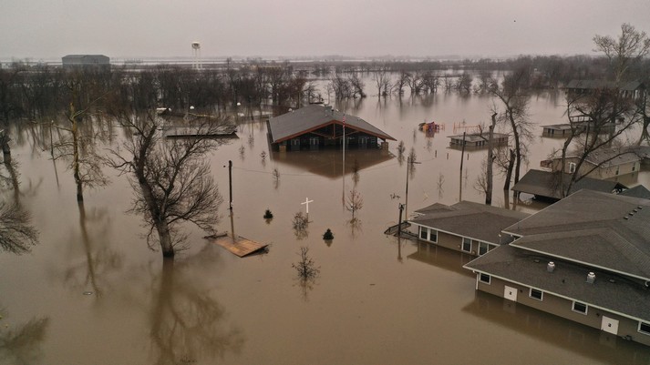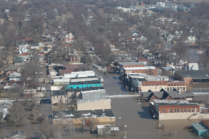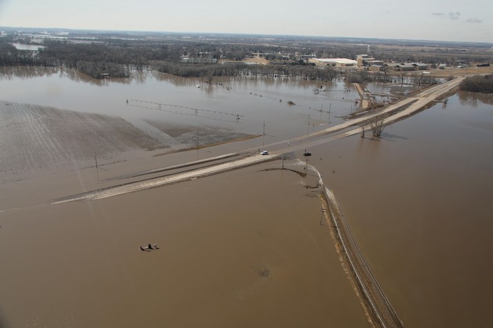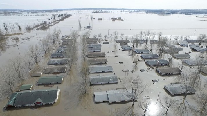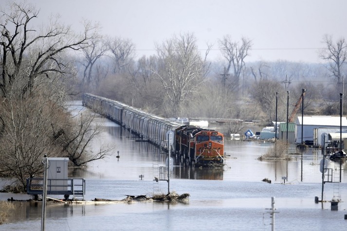 Повені затопили значну частину фермерських штатів Айова і Небраска уздовж найдовшої річки Північної Америки Міссурі, що спонукало половину з 99 округів Айови оголосити надзвичайний стан. Повені були викликані потужним зимовим ураганом, який увірвався в сільськогосподарський пояс США минулого тижня, убивши величезну кількість худоби, знищивши зерно, соєві боби і відрізавши доступ до ферм через пошкодження автомобільних шосе і залізниць.