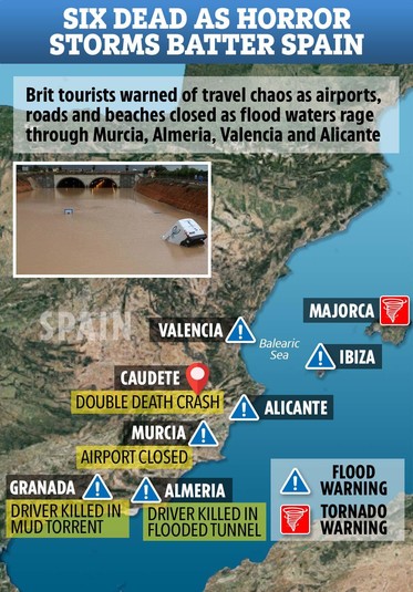 Сильні шторми і проливні дощі призвели до повеней в декількох регіонах Іспанії. Найбільш постраждали райони Валенсії, Мурсії і Східної Андалусії.